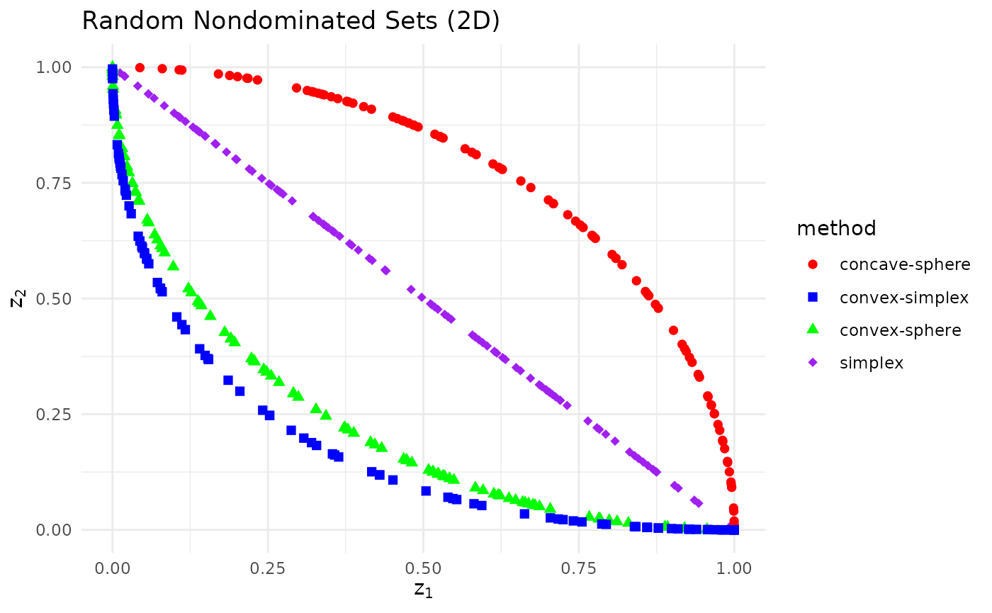 This example illustrates how to sample random sets with mutually nondominated points.