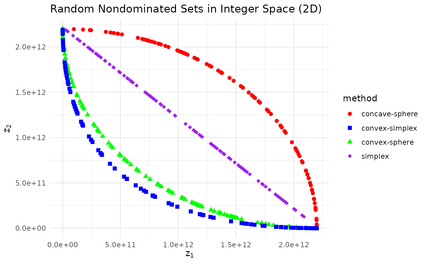 moocore::generate_ndset(n, 2, method = method, seed = 42, integer = TRUE)